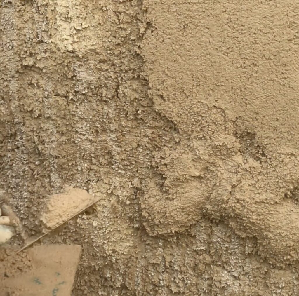 3 – Structure amorphe => Chaux plus réactive => Neutralisation des argiles crues et effet pouzzolanique qui apporte une certaine résistance. Utilisation possible de sables locaux terreux, argileux et de charges argileuses habituellement inutilisées en enduit. On retrouve avec ces charges les grains variés en grosseur et la couleur des terres locales qu’on observe dans les très vieux enduits.